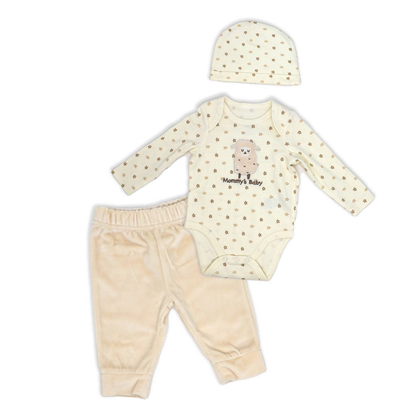 Baby Girls 3 Piece Plush Pant Set: Cream Sheep