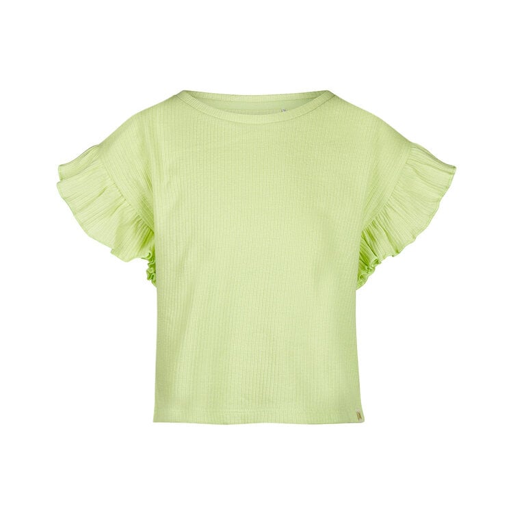 This Koko Noko girls' T-shirt, in a fresh green, is a cheerful and comfortable choice for summer. It features a subtle ribbed texture and striking ruffles on the sleeves, adding a playful and stylish touch. Made of 95% cotton and 5% elastane, it offers softness and freedom of movement for every little explorer. An ideal Koko Noko piece for sunny days full of fun and adventure.