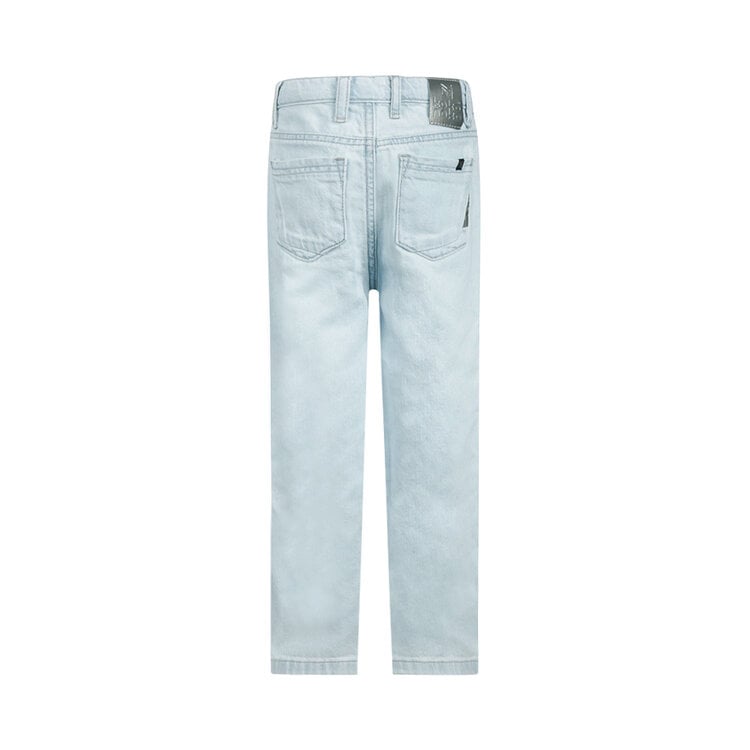These Koko Noko wide-leg jeans for girls, in a light blue denim wash, are a trendy and comfortable choice. Made of 100% cotton, they offer comfortable wear and a classic denim look. The wide legs create a fashionable and relaxed fit, perfect for any occasion. A versatile Koko Noko item that's easy to style with either a cool or casual outfit.