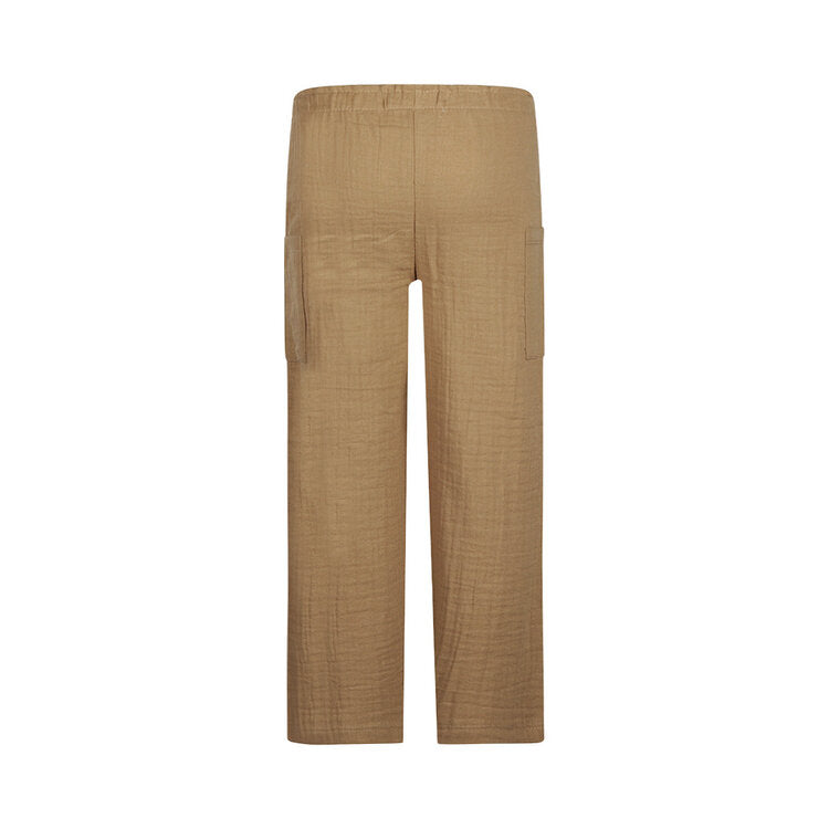 These Koko Noko girls' pants, in a warm brown color, combine comfort with a cool look. The muslin pants have trendy wide legs and practical cargo pockets on the sides, creating a casual look. Made of 100% cotton with a light texture, they offer softness and breathability. A versatile Koko Noko item perfect for adventurous days of play.